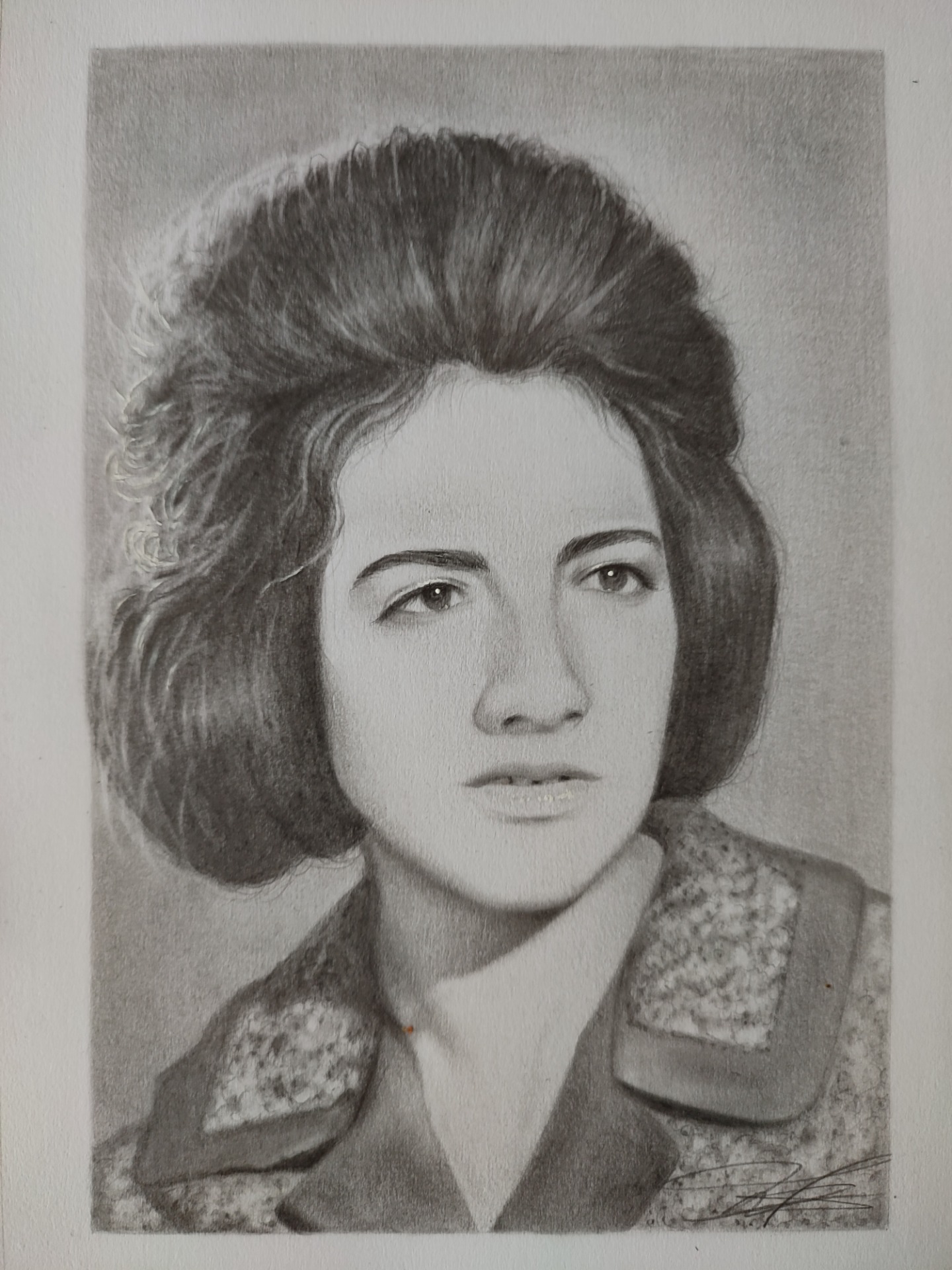 Retrato de foto antigua, con restauración, aumento de tamaño y adición de detalles perdidos por daño en fotografía original.
