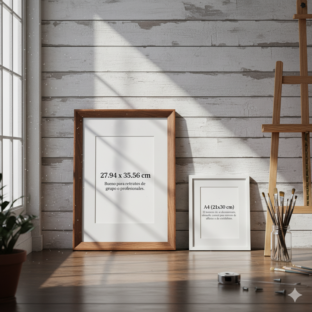 - 11 x 14 (27.94 x 35.56 cm): Bueno para retratos de grupo o profesionales.